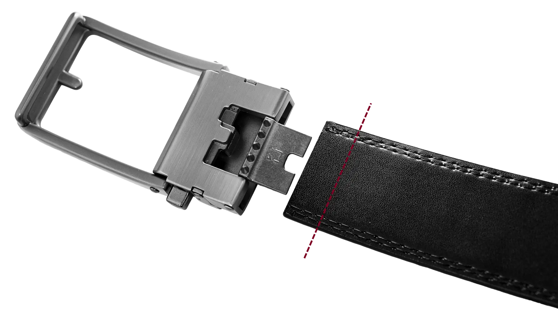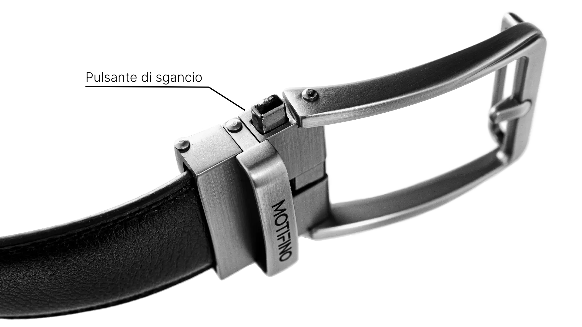 Sgancia la fibbia, accorcia la cintura e reinserisci la fibbia. In 2 minuti avrai la tua cintura su misura